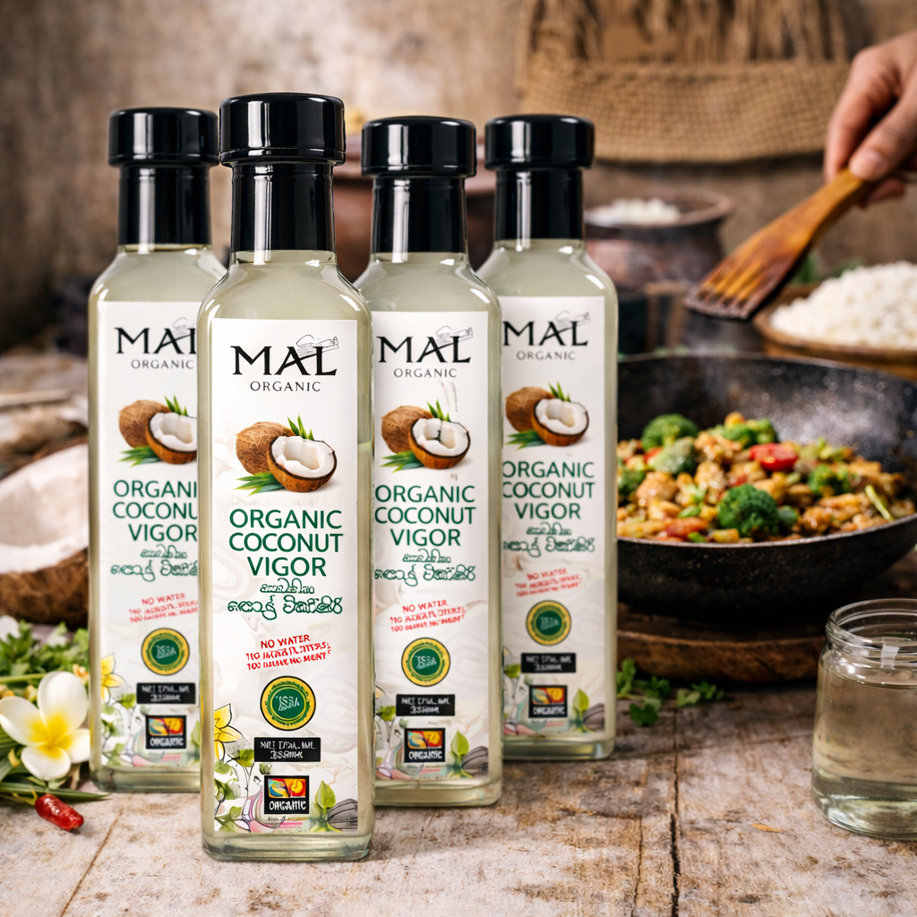 This vinegar contains no artificial colors, preservatives, or additives. Unfiltered and naturally fermented, MAL Organic Coconut Vinegar is suitable for everyday cooking and food preparation. Its gentle sourness makes it ideal for salads, marinades, pickles, sauces, and traditional Sri Lankan dishes. This product is well suited for health-conscious consumers seeking a natural vinegar alternative made from coconuts.